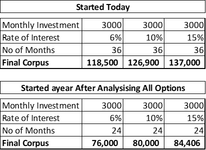 We have been writing these blogs for past 6 years and there are almost 100 blogs that we have written. Having said this, I think it is fair to be optimistic that most of our readers, if not all, will have the above mentioned tools in place to handle the financial risks in a better way. The optimistic scenario for this ilk - Starting a Saving. The biggest problem for anybody yearning to save for a future need is the Inability to Start . We are always so immersed in debts and spending for gratification that we are unable to start a saving of even 2% of our incomes consistently. Even before doing this, we start thinking about where to save? Should I do RD or put money in Sukanya Samriddhi? Should I buy a LIC Policy or do a SIP in Mutual fund? Should I invest in large cap fund or mid cap fund ? Where will I get higher return? The option that I selected is risky ? Will the option beat Inflation? or Should I simply buy a house on loan and be done with it? Or how about buying Gold? Should I buy Jewel or as coins? Should I buy as Coins or should I Invest in SGB issued by Govt ? I am so confused, so lets seek a Expert.. But hold on, Is the guy I am seeking the "Expert"? Arrey yaar! Pehle 5% Income save toh karo! (1st start saving at least 5% of your income). If you are not saving at least 5% of your income consistently (after all your loans including home loan), then these questions are like -80'C in south pole, it does not matter! You cannot withstand 25'C, 1st start preparing for this.